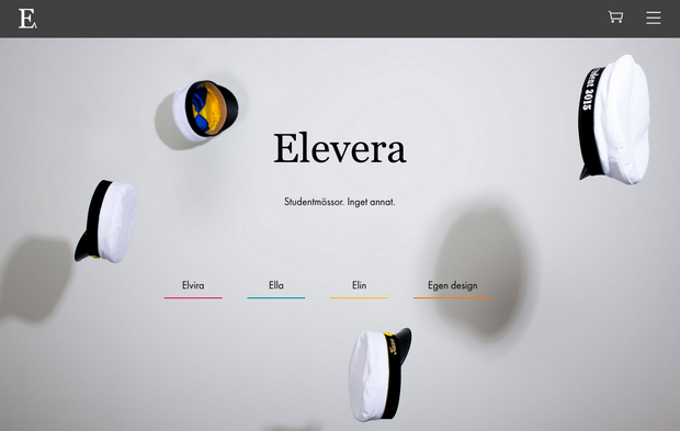 Företaget Elevera drivs av Sveriges Elevkårer och säljer idag studentmössor i sin webbshop via Nordisk e-handels plattform. I Eleveras skräddarsydda webbshop har vi implementerat en avancerad konfigurator, så att kunderna ska kunna designa sin egen studentmössa. Shoppen har även en rabattkodsfunktion som gör att vinsten i shoppen går tillbaka till elevkårerna. Projektet var en teknisk utmaning för oss och resultatet är ett bevis på hur anpassningsbar och flexibel Nordisk e-handel är.